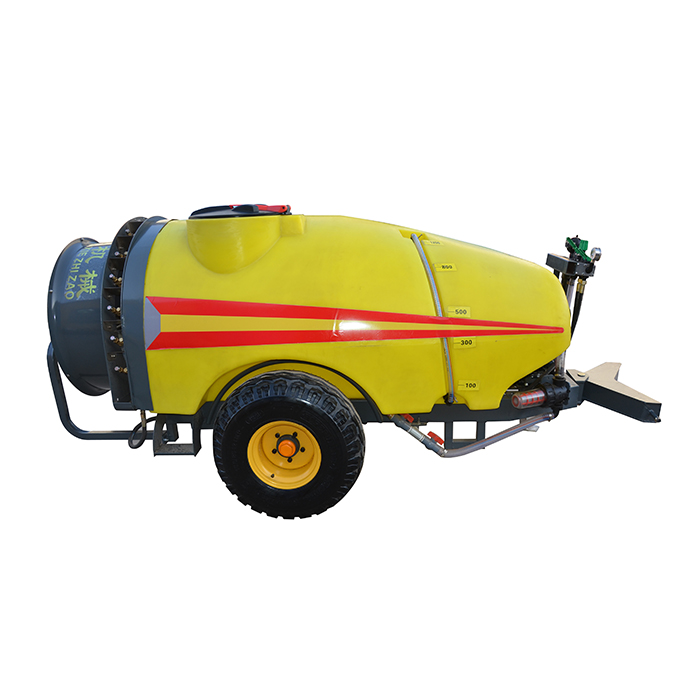 Penyembur letupan udara treler digunakan bersama dengan traktor lebih daripada 50hp. Aci penghantaran PTO digunakan untuk memacu pam semburan dan kipas semburan pada masa yang sama. Dengan transmisi mekanikal yang ringkas, pemandu boleh mengendalikan mesin secara bebas dengan mudah. Apabila mesin bergerak, di bawah aksi bersama kipas tekanan sederhana dan pam ubat tekanan tinggi, ubat cecair diatomkan secara seragam, dan titisannya sangat halus. Dengan bantuan isipadu udara yang sangat besar dan aliran udara yang lembut, jadikan lapisan dalam dan luar dahan dan daun buah dengan cepat melekat pada cecair ubat di bahagian depan dan belakang, menjimatkan air dan ubat sebanyak lebih 30%. Kipas menggunakan transmisi kotak gear, yang boleh melaraskan kesan pengabusan. Ia sesuai untuk taman yang jarang atau baru ditanam, serta taman pokok buah-buahan yang padat atau tinggi.